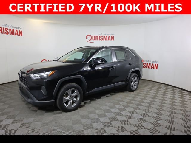 Certified. Black 2022 Toyota RAV4 Hybrid XLE AWD eCVT 2.5L 4-Cylinder CARFAX One-Owner. CERTIFIED 7 YEAR/ 100,000 MILE WARRANTY.