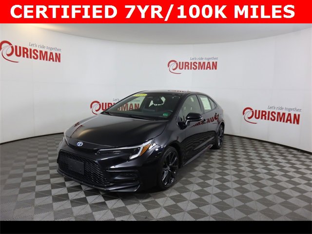 Black 2023 Toyota Corolla Hybrid SE FWD CVT 1.8L DOHC 16V VVT CARFAX One-Owner. CERTIFIED 7 YEAR/ 100,000 MILE WARRANTY, ABS brakes, Alloy wheels, Electronic Stability Control, Heated door mirrors, Illuminated entry, Low tire pressure warning, Remote keyless entry, Traction control.