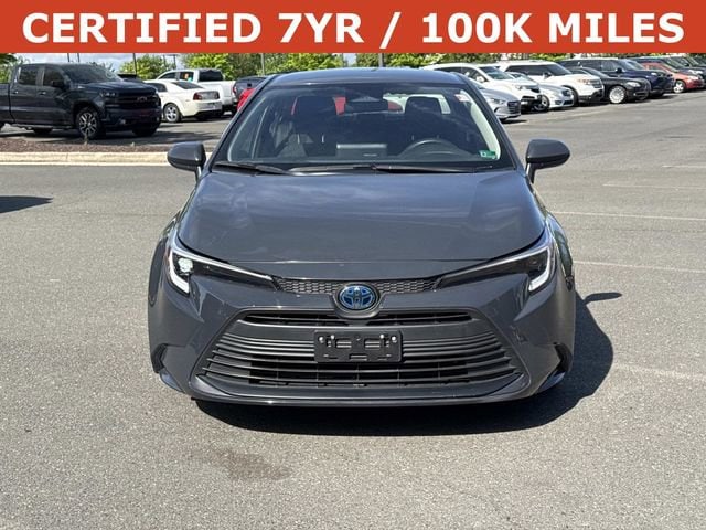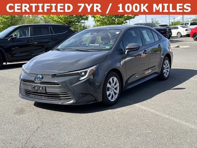 The exterior of this Corolla Hybrid LE is finished in a sleek Gray color, complemented by a range of thoughtful design features. Fully automatic headlights, body-color bumpers, and power door mirrors contribute to the vehicle's modern and refined appearance.