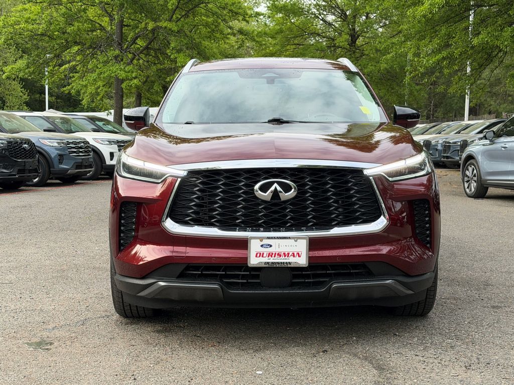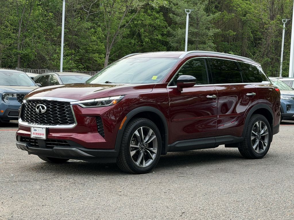 This Blue Advantage Certified, one-owner, clean CARFAX Infiniti QX60 Luxe has been well maintained per CARFAX and shows very low miles with great gas mileage and confident AWD performance. It is powered by a 3.5L V6 engine paired with a 9-speed automatic transmission, finished in Deep Bordeaux with a Graphite leather interior.
